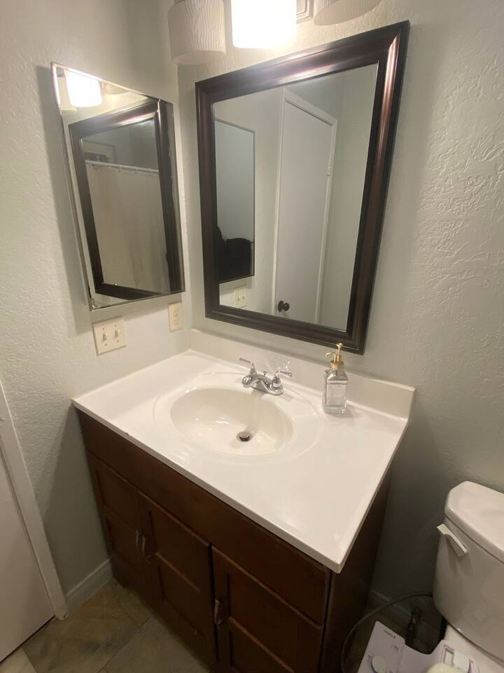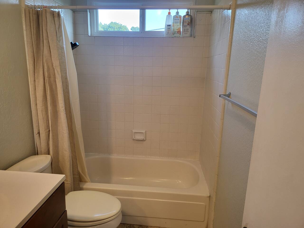 This unit has two bathrooms. There is a laundry room downstairs, under the stairs, and laundry is free. The laundry room is a shared space with other tenants in the building. Laundry supplies are not provided. The laundry room is locked. A key to the laundry room is provided. Please keep the laundry room locked when not in use.