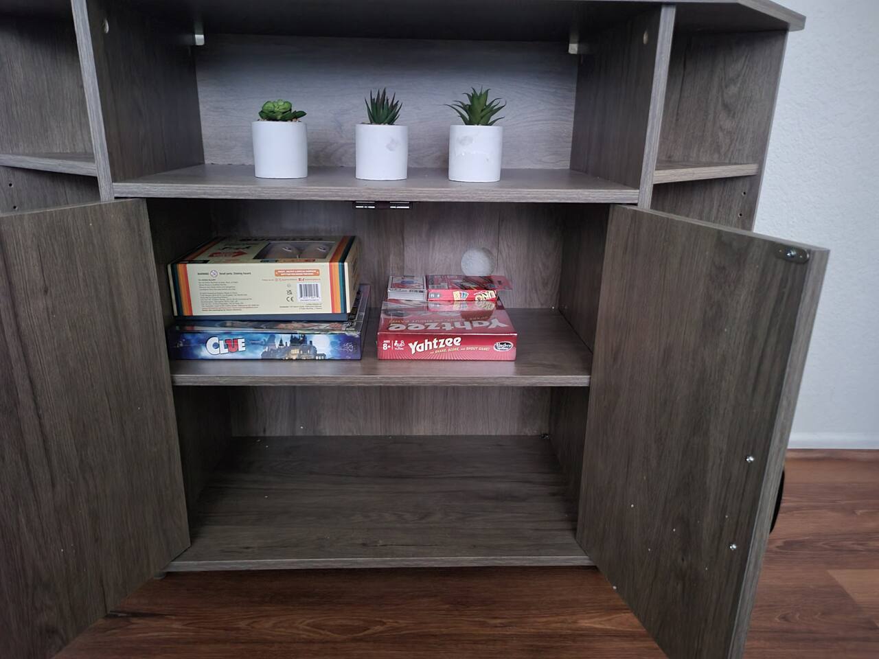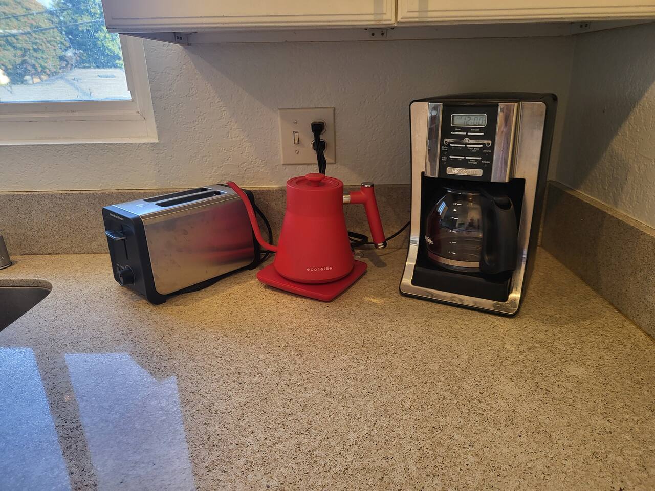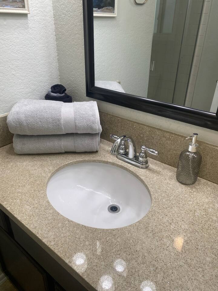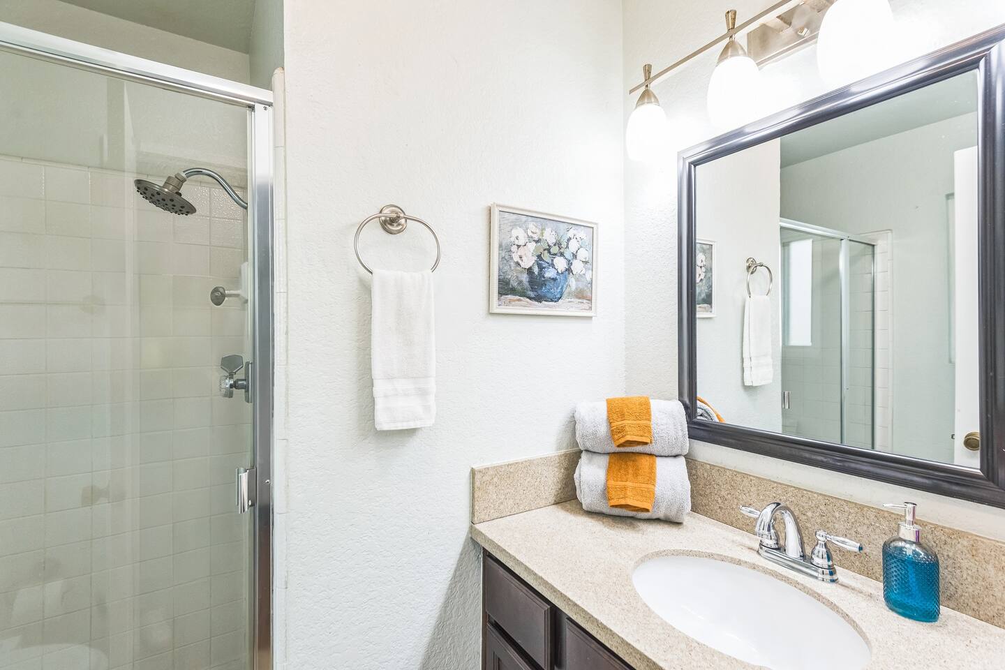 This two-bedroom, two-bathroom condo is located on the second floor. The primary bedroom features a queen bed and a private bathroom with a walk-in shower. This room includes a dresser, a large closet, and two nightstands equipped with standard and USB charging ports for convenient bedside charging. Additionally, it has a smart TV. The second bedroom contains a full bed, along with charging ports located on the left side of the bed frame for electronic devices. This room also comes with a smart TV and a TV stand that holds board games and puzzles. The lamp in this room has a built-in USB charging port as well. The living room features a queen sofa bed, a smart TV, and a gas fireplace. A lift-up coffee table can also be used as a dedicated workspace, dining table, or laptop table. It can also be extended to accommodate four people, making it perfect for game nights or extra dining. In the hallway, you will find towels and extra sheets, and blankets. The dining area features a large table with five chairs. The kitchen is well equipped with a toaster, coffee maker, electric can opener, electric hot water kettle, dishwasher, stove, microwave, and refrigerator. Overall, this space is thoughtfully designed and set up for a very comfortable stay.